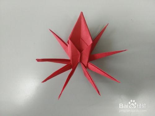 4. 连接触手:将每个小三角形的顶点向中心折叠,使其与正方形的中心点对齐。这样,每个小三角形就变成了一个触手。